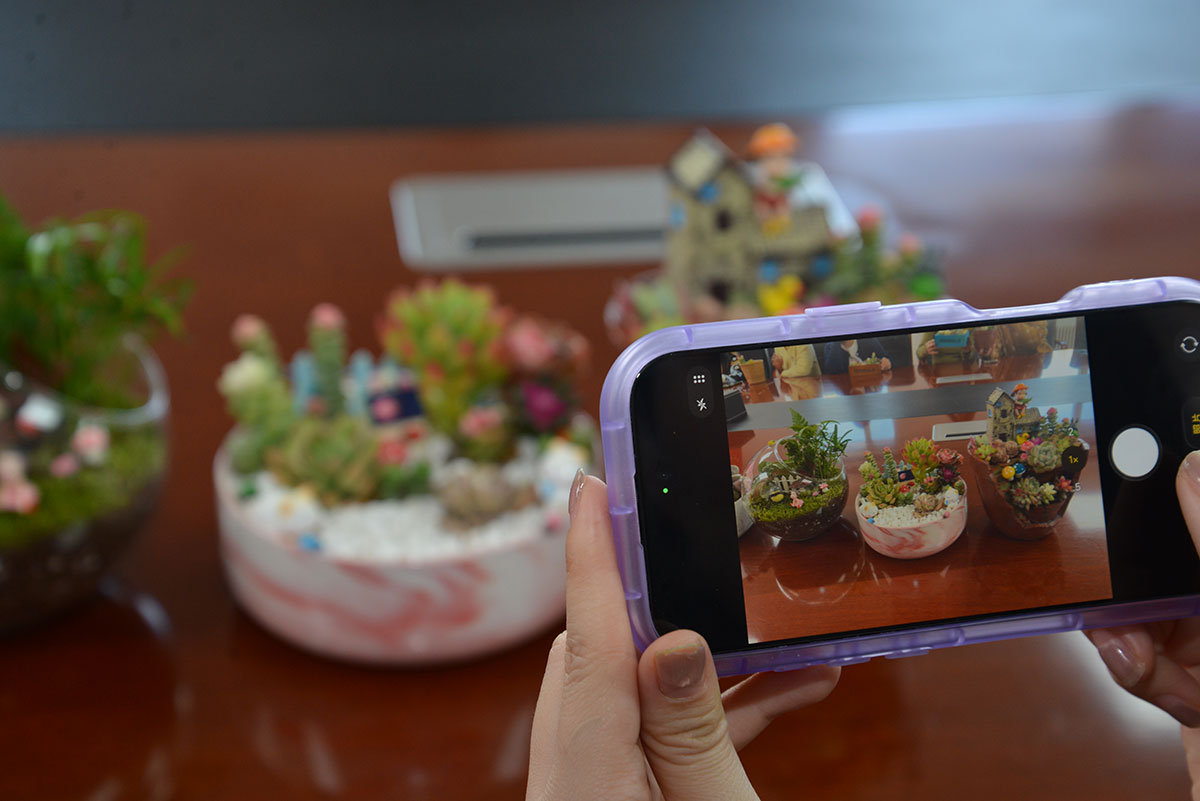 不一会儿,单调的泥土在大家手中变成了微景观花园。每一盆多肉都承载着女神们对美好生活的热爱。